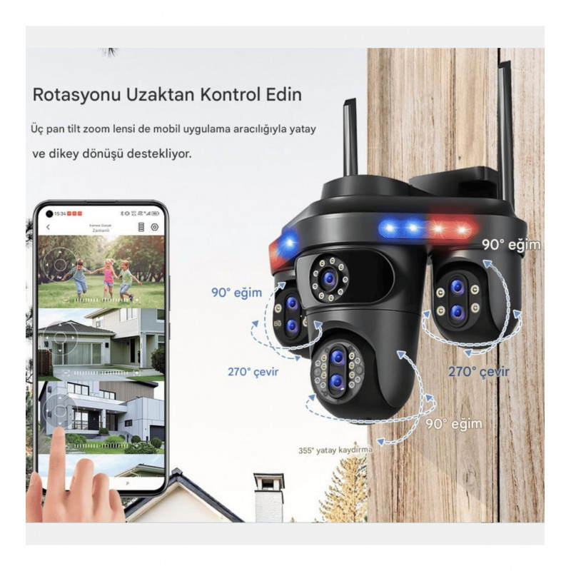Dahili Siren, Gece Görüş, Iki yönlü ses, Hareket algılama, Vandallara karşı, Düşük güç, Su geçirmez/hava, PAN-TILT, İnsan hareket takip